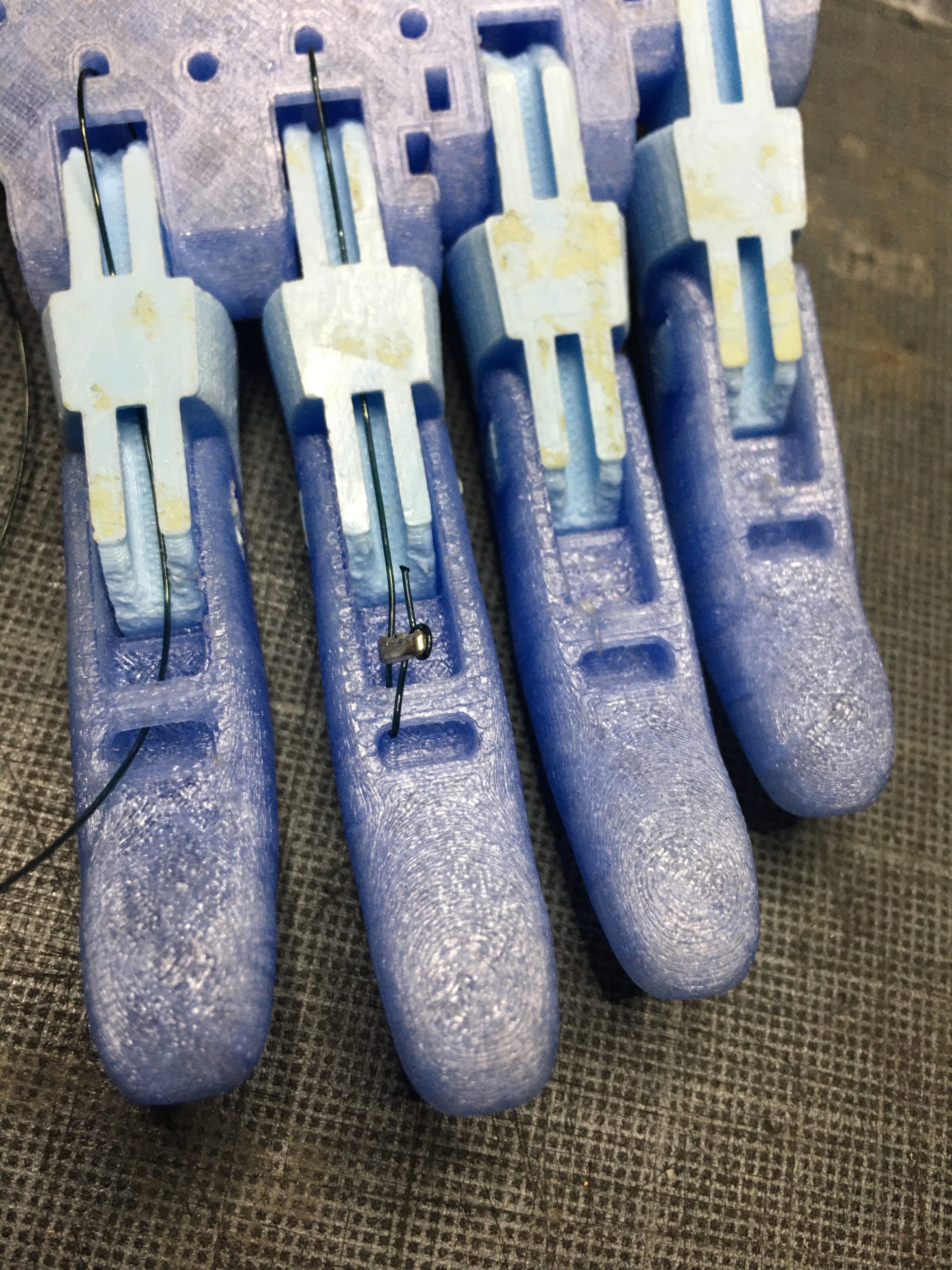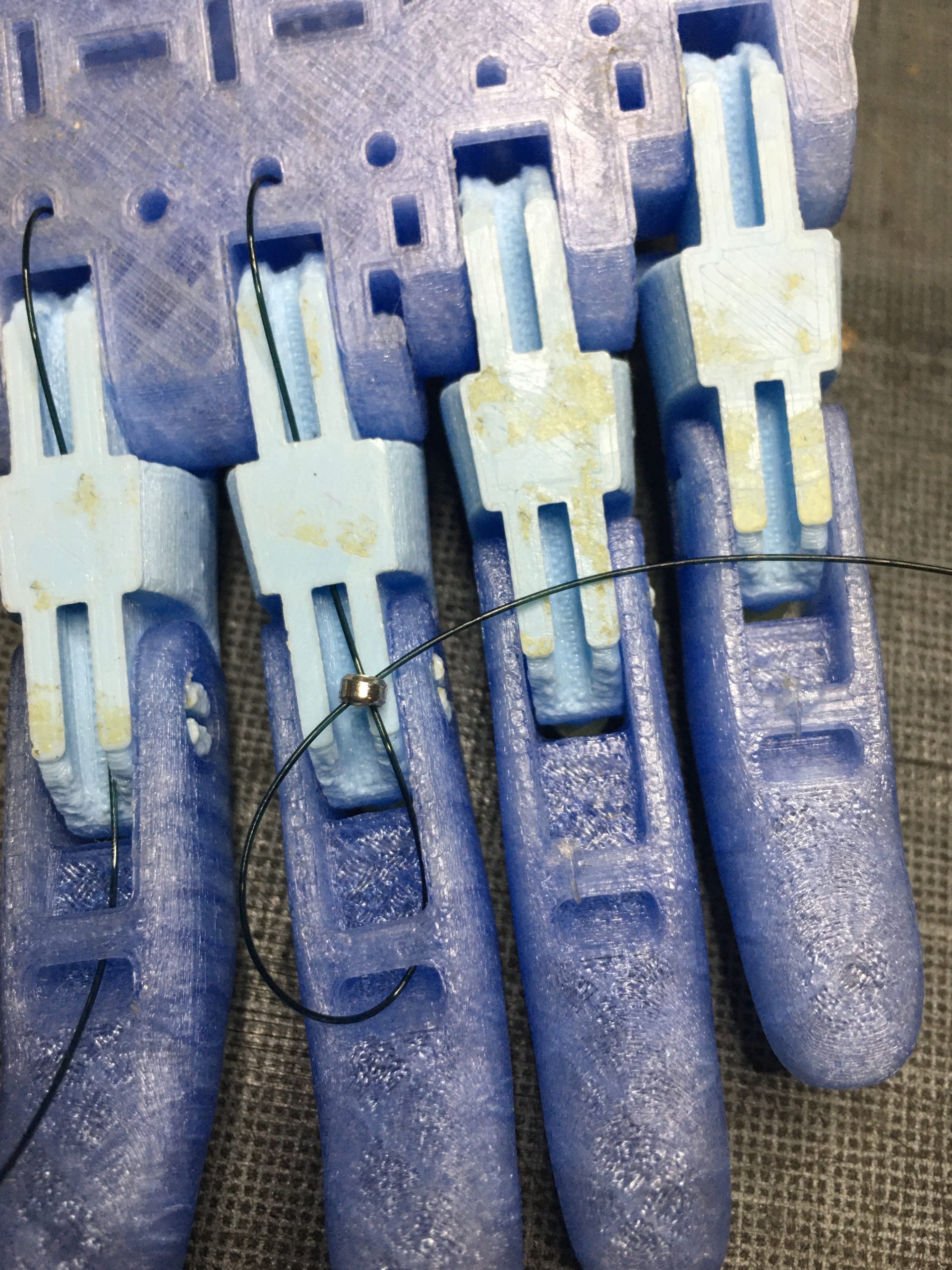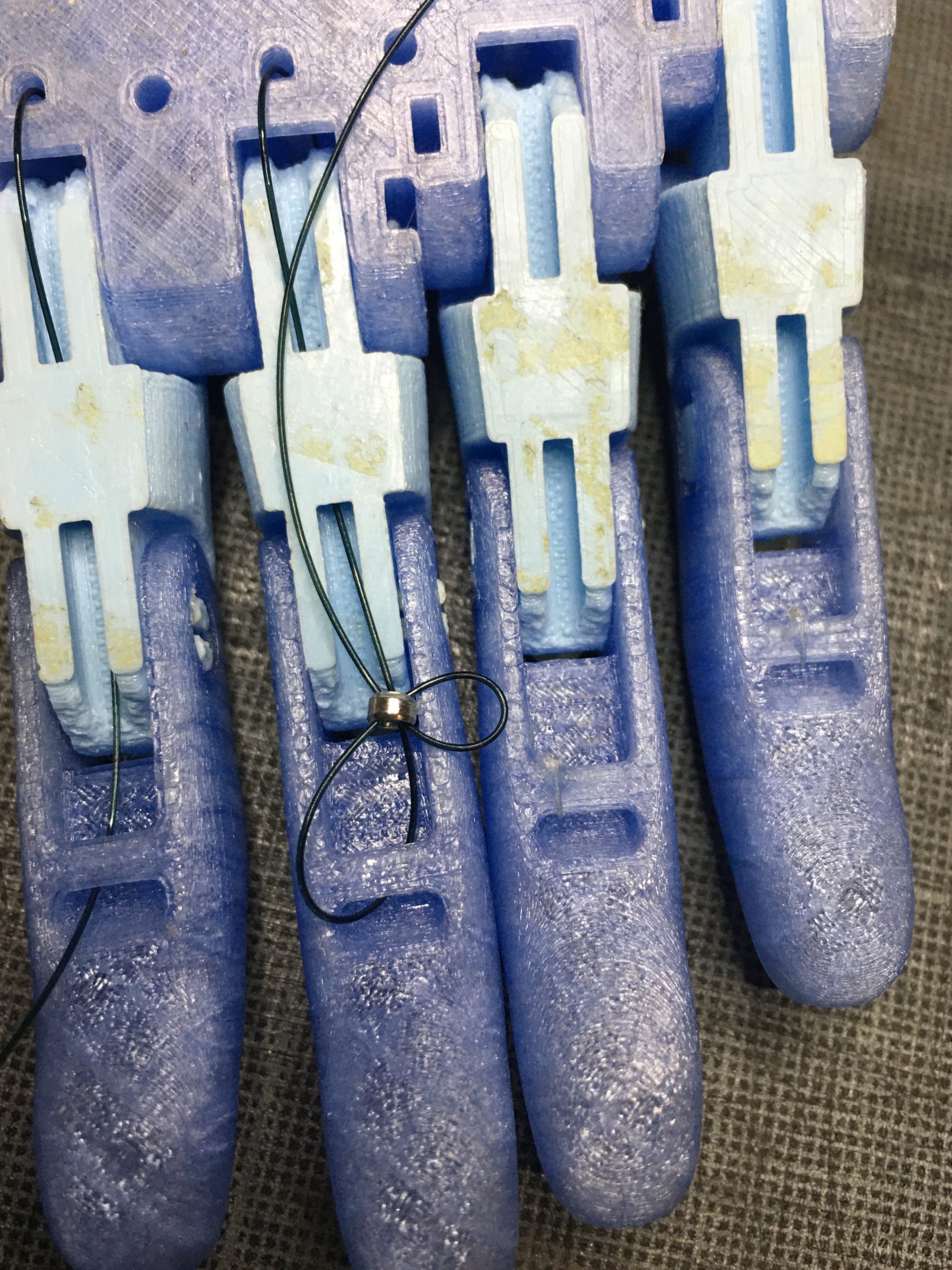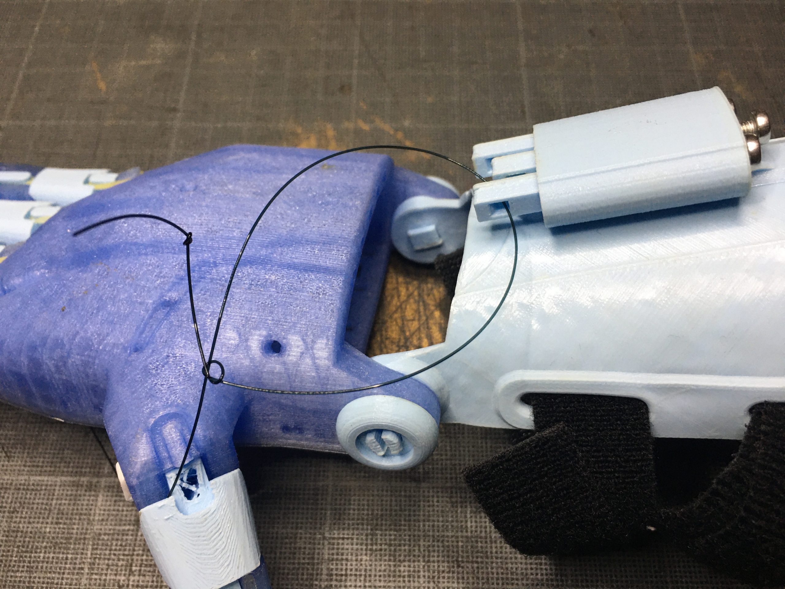 Les tendons sont en fil nylon non élastique monofilament. Ils sont utilisés pour fermer les doigts lorsque l’utilisateur plie le poignet ou le coude, selon l’appareil, main ou bras.